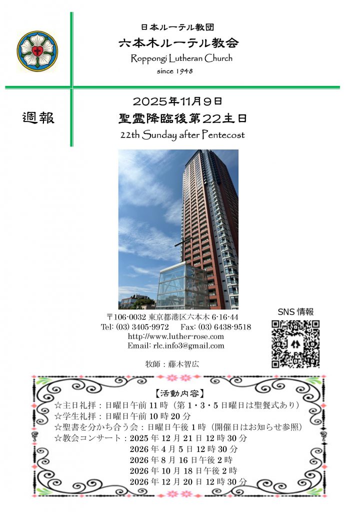・礼拝開始(11時)の2分前に前奏が始まります。
