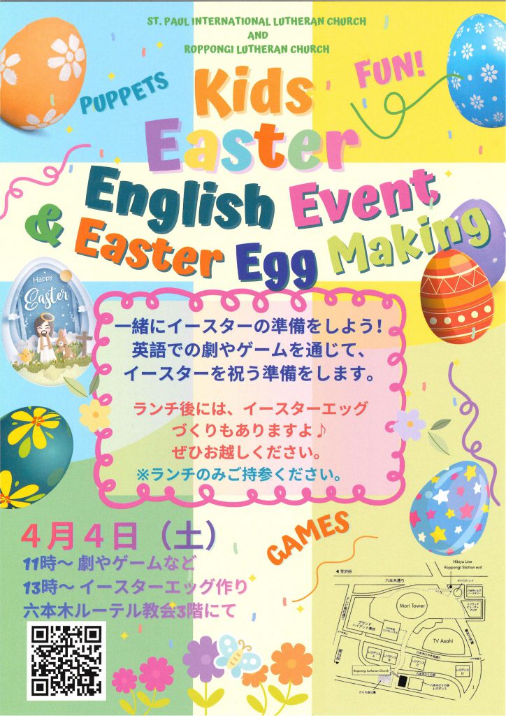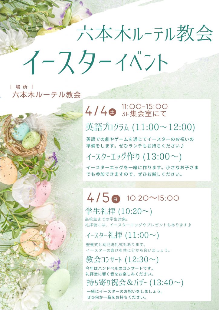 ・礼拝は11時から12時15分頃(聖餐式あり)までです。