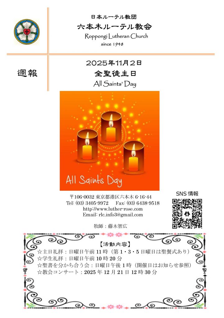 2025年11月2日 全聖徒主日(召天者記念礼拝)