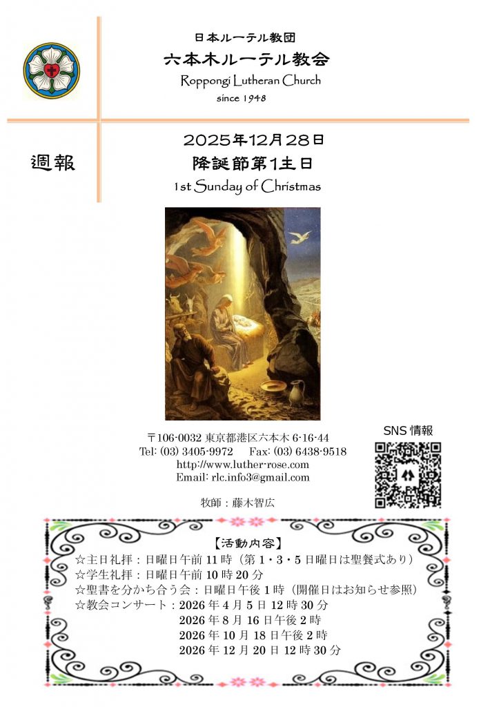 2025年12月28日 降誕節第1主日