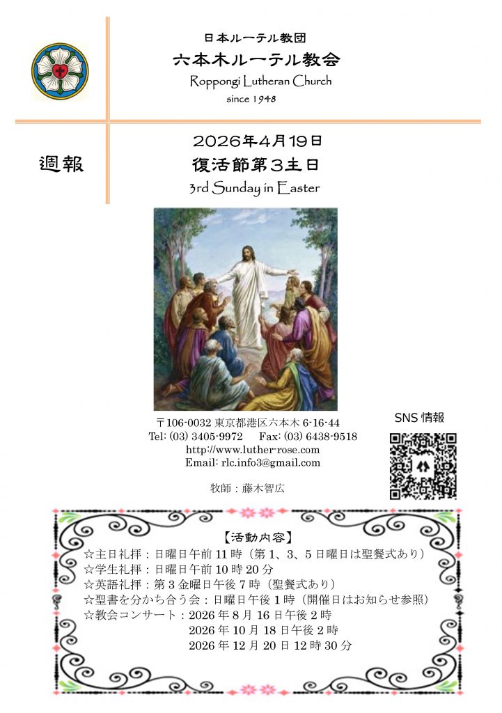 福音の朗読:ルカによる福音書24章13~35節(新約P.157)